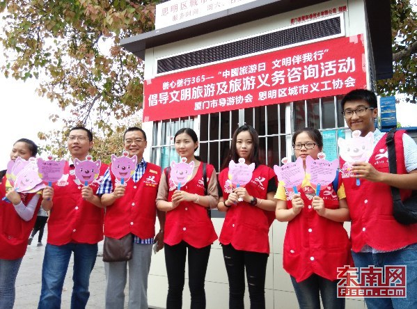中国旅游日,文明伴我行。(彭菲 图) 东南网6月28日厦门讯(本网记者 邹玒 通讯员 郭珏莹)7月起,厦门所有的公交车上(包括BRT线路)都将播放一个萌萌的、会动的“善行善心365”倡议书。厦门公交集团微信平台上也将同步推送。 倡议书的主角是厦门本土卡通形象“星星狐”,这个时长两分钟的动画已经在邮轮码头、中山路步行街、曾厝垵、软件园等地播放。接下来,还将推广至辖内各中小学、街道社区、曾厝垵教堂、庆福寺等。 此外,6月19日上午,童声版的“善心善行365”文明旅游倡议书首次“登上”旅游大巴。端午小长假期间,倡议书已向全市导游推广,并在多辆旅游大巴上播放。厦门如今已有4600多名导游、200多家旅行社,协会积极推动童声版倡议书在每辆旅游大巴上播放,并配合导游的讲解与引导。 在端午小长假前,倡议书在市旅游局政务网、厦门旅游培训中心网站、各相关旅游行业QQ群以及相关的微信公众平台发布,导游可以直接下载拷贝。 厦门市导游协会会长张斌表示,由于每辆旅游大巴条件不一样,有播放条件的,就可以拷至U盘直接通过大巴的设备播放,没有条件的,就由导游通过手机扩音播放。这一举措已在端午小长假期间开始推广。 今年3月14日,厦门市思明区城市义工协会与厦门南普陀寺于联合发起“善心善行365”活动,呼吁市民一年365天,每天怀善心、行小善,从6件文明小事做起。活动启动以来,“善心善行”已经从思明区的主要景区推广到了越来越多的公共场所,也从两个发起单位推广到了3000多家响应单位和组织 |