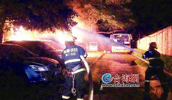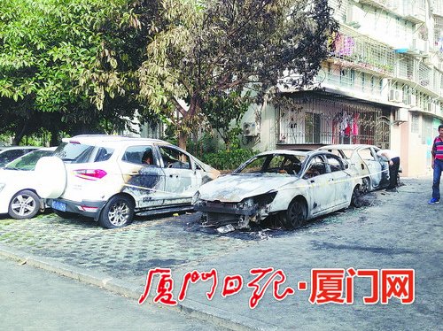 东南网9月8日讯(海峡导报记者 刘承烺 陈巧思 黄敏江 通讯员 陈荣亮 杨宇杰 文/图)凌晨,睡梦中蔡先生被爆炸声吵醒,隐隐约约听到有人说:“车子着火了!”他到阳台上一看,冒光处刚好是他停车的地方。“坏事了!”他拔腿冲下楼,跑到停车位时,已是火光冲天,3部轿车正熊熊燃烧,其中一部是自己的福特车。 昨日凌晨4:51左右,东坪花园小区里一部汽车自燃,总共7部车受损,其中2部车烧毁。 回忆:火苗蹿起两层楼高 “当时我正在睡觉,听到楼下传来‘砰砰’的爆炸声,爬起来到窗边一看,发现大火足有四五米高!”东坪花园小区的居民陈大妈说。 这些蹿起的火焰,将停在起火轿车旁的其他6部车也烤得“毁容”了。 保安老江是第一个发现起火的。当时他一个人拿着手电筒在小区内巡逻,走到靠近围墙的那栋楼时,发现紧邻一楼住户阳台旁,一部标致车的发动机右侧有火苗冒出。他迅速跑回值班室,一边拿灭火器一边叫同事帮忙报警。 等老江拿着灭火器返回时,火越来越大,他甚至听到了轮胎的爆炸声。他拿起灭火器,对着起火车头猛喷。突然,标致车的油管爆裂,车底有汽油流出,并顺着斜坡往下流,起火的车头也瞬间燃起大火。 炙热的火焰让老江不敢靠近,眼睁睁看着地上的汽油变成一条火龙,将斜坡下方的雪铁龙轿车和福特车引燃。3部车一起燃烧,火苗直蹿两层楼高。 旁边还停了很多车,老江急忙在小区大喊:“谁的车停在后面的停车位,赶快来移开,不然全部要烧了!”一名出租车司机闻讯而来,把车挪开,未被烧着。 |