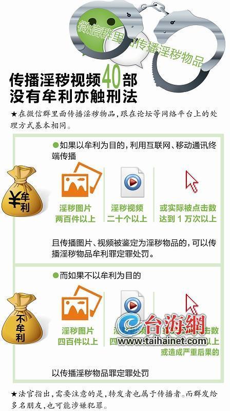 东南网9月11日讯(海峡导报记者 吕寒伟 通讯员 厦公宣/文 叶允平/制图)微信群里,群主发“黄片”,通过微信红包,向群成员收取微信红包作为“入群费”。昨天,厦门警方通报,这名23岁的群主已被抓获。 一男子利用微信群传播黄片被抓 7月中旬,腾讯公司向网安支队举报称,一个藏匿于厦门的微信群涉嫌传播淫秽视频。网安支队民警立即开展调查发现,该案属于新型网络犯罪,作案手段新、手法隐蔽、传播速度快。 群主每天在微信群中发布大量带有淫秽内容的视频、短片和网页链接供群成员共享。专案民警搜集调取了大量证据,并通过走访排查,锁定了犯罪嫌疑人的真实身份。 8月13日上午11点左右,网安支队联合湖里公安分局网安队、江头派出所,在思明区厦禾路一写字楼内,将正在传播淫秽视频的微信群主吴某建当场抓获。 系全省首例,群内成员116人 吴某建随身携带的两部作案手机中,有淫秽视频500多部;在他的暂住处,警方查获用于作案的笔记本电脑一台,查获淫秽视频1000余部。 经审,吴某建今年23岁,泉州南安人。对于利用微信群传播淫秽视频牟利,他供认不讳。该起案件是厦门警方破获的全省首例“微信群”传播淫秽视频牟利案。 吴某建交代,他在厦门某公司从事业务员期间,利用工作闲暇时间组建了一个微信群,在群内发布大量的淫秽视频、短片等,并通过微信红包向群成员收取“入群费”,以此牟利。目前,牟利金额仍在查证。 经查,群内成员116人,吴某建传播的淫秽视频达1500余部。目前,犯罪嫌疑人吴某建已被刑事拘留,案件仍在进一步审理中。 |