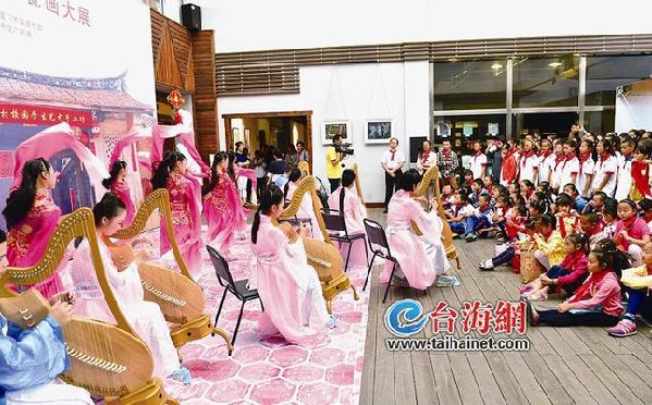 东南网10月18日讯(海峡导报记者 崔晓旭/文 吴晓平/图)箜篌,中国汉族十分古老的弹弦乐器,在古代除宫廷雅乐使用外,在民间也广泛流传。从十四世纪后期不再流行,以致慢慢消失,只能在以前的壁画和浮雕上看到一些箜篌的图样。 昨天,这种沉寂已久的古代乐器,伴随着孩子们优美的舞蹈,在中华儿女美术馆大厅优雅地奏响。大厅里的观众以中小学师生居多,无论长幼,皆聚精会神地欣赏。 这不是一场演出,而是一次海沧区农村学校艺术教育的探索性实践与展示,一个艺术教育创新项目启动仪式的前奏。 余音袅袅之中,“海沧区农村学校艺术教育实践园”项目在中华儿女美术馆启动,并宣布即日起首先以学生艺术手工坊的形式与馆方目前正在推出的“中国百家艺术瓷画大展”同步展览。学生艺术手工坊将展至10月23日。 据悉,“中国百家艺术瓷画大展”汇集中国现当代美术史上高山仰止的百位顶尖级画家作品,他(她)们以国画形式,在国粹瓷盘上各自施展丹青技艺,绘制心中的妙图。经过层层筛选,该展览被国家文化部评定为“2015年全国美术馆馆藏精品展出季”的27个项目之一,是厦门首度入选。 而海沧区是国家教育部指定的全国126个农村学校艺术教育实验县(区)之一,是国家旨在让广大农村学生享受公平优质的艺术教育而开展的一项行动。来到中华儿女美术馆展示的,正是最基层、也最接地气的艺术项目——农村孩子们稚嫩的手工作品。两者对比虽反差极大,放在一起,却非常和谐。因为它们有着共同点,源自生活。“让孩子们通过观赏大师作品,滋润艺术心灵,也通过了解国画家在瓷盘上作画的这个形式,打开艺术创作的眼界。”中华儿女美术馆馆长李忆敏说,“艺术的表现方式是多种多样的,媒介只是一个载体而已。如果能够受此启发,开启他们的艺术思维,创作出更加贴近生活的作品,那可谓是‘高山流水育幼苗’了。” |