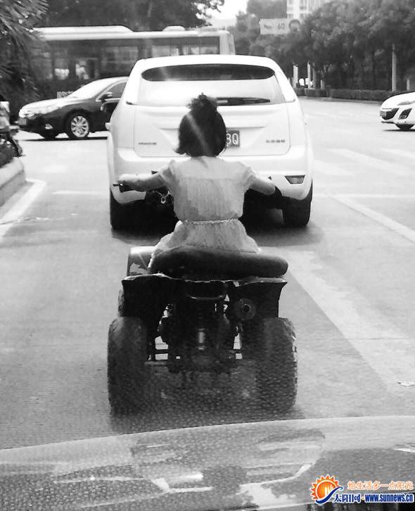 女孩骑沙滩车动作娴熟。黄先生供图 昨日12时前埔路 海西晨报讯(记者 白斌斌 见习记者吴宇豪)沙滩车上,她操作娴熟,在机动车道上来去自如。骑车在马路上行驶不是很正常的吗?不过,这名骑手实在太小了,看起来就10岁左右。因为年龄小,起初还被市民误认为是残疾人。 昨日中午12时许、在前埔路附近,市民黄先生看到了这样的一幕。为此,不少看到的人都为小女孩捏了一把汗。警方表示,开沙滩车上路,是明显的违规行为。 现场:女孩淡定骑沙滩车 昨日12时左右,市民黄先生从软件园开车前往会展中心。在经过前埔路时,发现前方有辆轮胎巨大的沙滩车,无法超车的他只好选择了跟随在后面。黄先生跟着沙滩车一路缓行,在东盛花园十字路口遇到红灯才停了下来。仔细一看,骑乘沙滩车的人好像有点矮小。“不会是残疾人吧?”黄先生猜测。 绿灯亮起时,沙滩车上的矮小骑手也不甘示弱,启动车子立即往前行驶。在开阔的路段,黄先生加速超过了这辆沙滩车,但是此时他看到的一幕让他不禁为之捏了一把汗:“骑车的是一个看起来大概10岁的小女孩。”黄先生告诉记者。 据黄先生介绍,当时这辆沙滩车的骑行速度并不快,时速在10公里左右。虽然路上车来车往,但是这个小女孩却十分淡定,骑车的技术也十分娴熟。“看起来应该不是第一次骑车上路了。”黄先生猜测。不过,为何这名女孩敢独自骑乘沙滩车上路,是否需要接受处罚,黄先生十分疑惑。 警方:沙滩车不允许上路 记者查阅资料发现,在我国,车辆只有在车管部门注册登记,才能上牌上路。根据相关规定,类似沙滩车这样的机动车辆,是无法注册登记的,因此也不能上牌上路。从黄先生提供的图片上来看,女孩所骑乘的沙滩车并无任何牌照。 记者也从警媒热线证实,除了法律允许的机动车可以在道路上行驶之外,其他车辆上路行驶都属违规,因此沙滩车上路肯定是违规行为。警方表示,沙滩车只能在一个特定的区域内,作为一种娱乐项目的设备使用,但是不能作为一种交通工具上路行驶。 警方提醒,沙滩车上路不仅会影响道路交通的运行,还会造成交通安全隐患。由于没有在现场见到,警方表示,尚无法确认女孩是否存在涉及违规行为,但是沙滩车上路是肯定违规的。 |