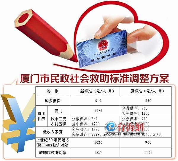 - [ 11-20]厦门提高社会救助标准 明年起城乡低保每人每月增60元