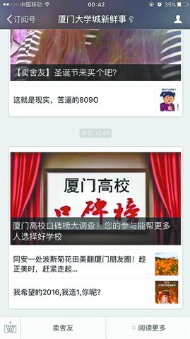 ■推送文章的截图。 厦门高校的口碑要进行大调查?那要不要赶紧为学校投上一票?昨天,名为《厦门高校口碑榜大调查!您的参与能帮更多人选择好学校》的微信文章被不少厦门高校学生转载,学生们还在朋友圈等平台为自己的学校拉票。 可是,到了昨天晚上,投票榜上涉及的高校却出了一份联合声明,表示坚决抵制此项活动,绝不参与投票活动。这是怎么回事呢? 厦门晚报讯(记者 林依文) 【发起活动】 要投票排出高校口碑榜,涉及厦门19所高校 昨天中午,名为“厦门大学城新鲜事”的微信公众号推送了《厦门高校口碑榜大调查!您的参与能帮更多人选择好学校》的文章。文内提到,如今各种高校排行榜让人眼花缭乱,却缺少来自公众的评价。因此,该微信公众号主办此次面向大众的评价活动,活动从12月25日持续到明年1月8日。公众如果要参与投票,要先关注“厦门大学城新鲜事”。最终,将按总票数排名,选出2015年厦门高校口碑榜。 据悉,投票榜涉及厦门大学、华侨大学(厦门校区)、集美大学、厦门理工学院、厦门大学嘉庚学院、集美大学诚毅学院、厦门华厦职业学院、厦门工学院、福州大学厦门工艺美术学院、厦门兴才职业技术学院、厦门软件职业学院、厦门东海职业技术学院、厦门城市职业学院、厦门医学高等专科学校、厦门海洋职业技术学院、厦门南洋职业学院、厦门华天涉外职业技术学院、厦门安防科技职业学院、厦门演艺职业学院等19所厦门高校。 |
