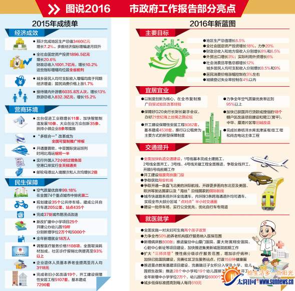 黄劲超 图 海西晨报讯(记者 易福进 雷妤 吴斯婷 曾昊然蔡樱柳)过去的一年,全市上下共同交出一份怎样的“成绩单”?新的一年,站在“十三五”开局这一新的起点上,厦门又准备怎么干? 厦门市十四届人大五次会议昨日上午开幕,市长裴金佳代表市政府所作的2016年政府工作报告中清晰而有力地作出了回答。 结合市发改委的《关于厦门市2015年国民经济和社会发展计划执行情况与2016年国民经济和社会发展计划草案的报告》、市财政局的《厦门市2015年预算执行情况和2016年预算草案的报告》,晨报记者梳理了与市民生活息息相关的医、住、行等九大关键词。 这些关键词勾勒出了美丽厦门的2016年新蓝图:厦门经济转型过坎的最艰难阶段已经过去,今年厦门将为经济这一“火车头”注入更强劲的新动能,促进经济加快回升向好;在“五大发展”理念引领下,厦门将更有力地改善民生,让百姓共享发展进程中更多的福利与实惠,增强幸福感、获得感。 【关键词:交通】 地铁4条线全面加速推进 提及交通,近年最热门的词汇当属“地铁”。随着快速路网建设逐步完善,厦门岛内岛外时空距离被拉近。在报告中,地铁建设被频频提及,有力推动跨岛发展。 眼下,地铁1、2、3、4号线已经全面开工,今年,地铁将全面加快建设———1号线基本完成土建施工,2号线全面开工,3、4号线关键工程全面推进,开展6号线前期工作。财政报告也提及,今年交通运输预计支出71.3亿元,主要用于保障轨道交通等重大交通基础设施投入、公交运营补贴等支出。由此可见,厦门正加大投入,地铁建设快马加鞭。 不仅如此,今年航空、铁路、航运全面发展。铁路方面,今年开工建设福厦高铁厦门段,全面推进动车运用所建设等;航空方面,争取获批翔安机场,主体工程开工;航运方面,东南国际航运中心建成投用海沧港区20#—21#泊位,开工建设东渡0#—4#邮轮码头改造工程等项目。 同时,今年,城市快速路系统外环全线通车,内环除3条跨海通道外均可通车,实现全市大部分区域“点对点”半小时交通圈。同时,厦门也将建设一批停车场。 【关键词:教育】 全年新增中小学学位2万个 全面两孩政策落地后,不少厦门市民计划生育“二孩”,也有人担心,多生这么多孩子,将来上学会受影响。对于这样的担忧,相关部门已经考虑到了。政府工作报告及其他两大报告明确,今年厦门将推进28个中小学和19个幼儿园新改扩建项目开工,全年新增中小学学位2万个、幼儿园学位6000个。 今后,岛内外的教育资源布局、教育水平也将越来越均衡。厦门将改造提升农村中小学设施设备水平,推进厦门一中海沧校区等岛外分校建设。 优秀的老师今后也将越来越多。报告透露,厦门将加大教师培训、教育信息化投入和“名校长+名师”优秀人才的引进,提升教育质量。 今年,厦门将完善随迁子女积分入学及小学、幼儿园招生政策,以市场主导、公平竞争的原则优化民办学校收费管理,完善民办幼儿园补助政策。 “国际学校”概念成为几大报告有关教育表述的一大亮点。厦门将争取引进国内外知名教育机构来厦开办一流的国际学校,鼓励多元化办学。 |