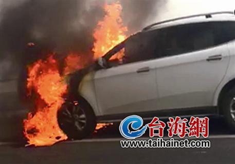 厦门:车行驶中车头突冒火 大火扑灭烧得只剩空架