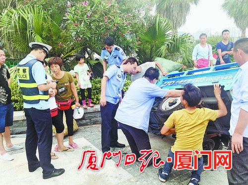 8日下午4时许,思明城管机动一中队和思明交警大队的执法人员一起上路巡查。辅道上、沙滩上、木栈道上……执法人员没有放过任何一个可能隐藏占道乱象的角落,连配电箱背后、树丛里,都一一查看。
