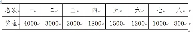 八、奖励办法 (一)名次奖(单位:美元) (二)破纪录奖: 1、男子打破2:06:19厦门国际马拉松赛赛会纪录奖励2万美元(仅限第一名),女子打破2:19:52厦门马拉松赛赛会纪录奖励2万美元(仅限第一名); 2、创中国境内马拉松赛(男、女)最好成绩者奖励4万美元(仅限第一名); 3、创世界纪录奖(男、女):奖励100万美元(仅限第一名); 4、一名运动员如同时破多项纪录,则只按最高奖项予以奖励。 (三)业余组奖 按年龄性别分组,分别为男、女20-40岁组(即1997年当年至1977年当年出生者);男、女40岁以上组(即1977年以前出生者),各组前8名分别获得奖金(单位:人民币): (四)厦门市民奖 1、奖励对象:报名日期截止之前取得厦门市户籍参赛者。 2、年龄组别:男、女20-40岁组(即1997年至1977年出生者);男、女40岁以上组(即1977年以前出生者)。 3、奖励办法:各组前8名分别给予奖金(单位:人民币)。 |