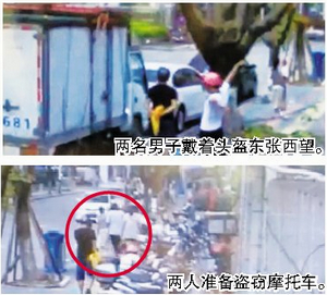 厦门日报讯 (记者 房舒)明明没有骑车,却戴着头盔站在路边无所事事。再仔细一看,手里还拿着液压剪!10月6日上午11点左右,在集美侨英街道,一家工厂的保安巡视监控时,发现两名疑似正在盗窃摩托车的男子,紧追不舍,终将其中1人抓获。 6日上午,工厂放假,班长老吴带着保安们加班,处理上次台风时刮落在屋顶的树枝和垃圾。正忙着,就听到底下的值班保安在喊:“快来看看,这两个人是不是有什么问题”。 闻声下来,在监控室值班的保安指着画面,让大家看两名站在街边的男子。他们戴着头盔,却没有摩托车或助力车,看起来确实很奇怪,仔细看,手里还拿着液压剪。眼瞅着他们蹲在一辆摩托车旁边,马上要动手了,值班的保安大喊一声率先冲出去。 两人就在厂外院墙下,听到保安大喊,动手的两人立即跳起来就跑。紧跟着,老吴和其他保安也追了出去。 |