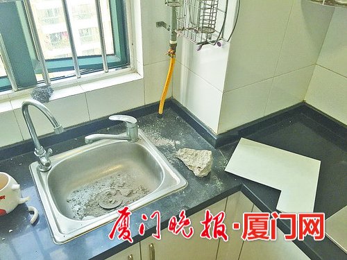 厨房掉下的水泥板 厦门晚报讯(记者叶芷蔚)只是两天没回家,回家后眼前的一幕让阮女士难以置信:家中落满了灰尘,客厅、厨房、卧室的屋顶都出现不同程度的破裂。近日,阮女士向本报市民热线反映了此事,她认为,这是楼上业主粗暴装修所致。 目前双方就房屋的修补和赔偿问题还没有达成一致意见。 楼下说 “楼上是粗暴装修 将我家搞成这样” 阮女士住在高林三里46号楼16层,去年12月25日和26日两天,因为孩子住院,她留在医院陪护没回家。第三天,她父亲先回家。一进门就看到满地的尘土,厨房燃气表上的吊顶整块掉下来了。此外,卧室和客厅与吊灯接口的天花板也出现了裂缝。 阮女士怀疑是楼上粗暴装修造成的,不久前,城管给对方下达了整改告知书,认定其存在违规敲墙行为。 阮女士通过物业找到楼上业主。物业调解了两次,两方都没有达成一致意见。近日,在城管的协调下,阮女士再次与楼上业主高先生就修补和赔偿问题协商,仍没有达成一致意见。 “对方修补期间,我们一家肯定没办法住家里。”阮女士说,所以她提出,楼上业主除了将她的房子恢复原状外,还得补偿她全家外出住宿的费用。 |