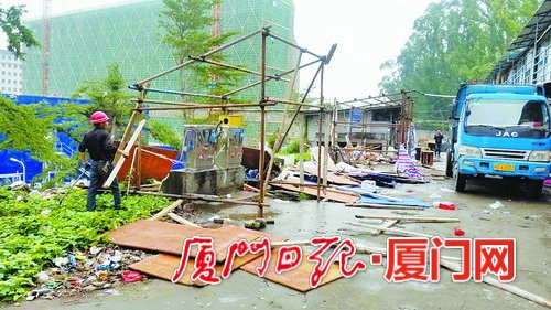 自拆违建现场 厦门网-厦门日报讯 (本报记者 黄小芳 通讯员毛语漩)几块木合板围成四堵“墙”,上面搭张铁皮屋顶,就成了供人居住的简易搭盖;冷空气直往里钻不说,作为横梁的铁柱,也已经生了锈,而木合板更是在时间的侵蚀中,从下往上腐烂了起来——石鼓山立交桥靠近殿前街道的一侧,紧挨着闽南古镇的一排工地活动房,已经拆完了一半;剩下的一半,一群工人正忙里忙外,搬旧物,找新家,拆违建。“我们早就想搬了,住在这里不安全。”包工头老许说出了不少工人的心声。为了让居住环境更加舒适,城区景观更加靓丽,殿前街道的居民群众,寒冬腊月拆“违”的热情不减,掀起了新一轮的自拆高潮。 简易搭盖存隐患 住户早就想搬了 “哐哐哐”,工具敲打着铁柱,头戴安全帽的老许,一边搬运拆下来的铁皮,一边提醒同伴,“小心,注意安全!”看到街道、社区的工作人员来了,老许放下铁皮,迎了上来,“我们的东西都搬走了,这两天加班加点,很快就可以拆完。”看着眼前破败的简易搭盖,老许说,自己在这里住了整整十年了,“不安全,早就想搬走了,但舍不得。” “拆下来的东西,还有用,可以拿去卖。”工作人员提醒老许。“我正准备卖呢,前两天,刚去联系了几家废品回收站。”老许说完,就招呼其他几名工人一起,和工作人员一起“开会”:如何更快、更安全地切割、拆架子?哪里的废品站给的价格高…… 这时,户主陈先生也从家里赶了过来。得知环境整治提升要拆违,陈先生在第一时间就通知了一百多户租户;租户一搬走,还没收到补贴的陈先生,就自费请了几十个工人来拆违。“环境整治提升,我肯定配合,恰好又到年关,怕请不到工人,我就赶早地请了几十个工人来拆,不到三天,就拆了一半多了。”一名街道工作人员感慨,“前段时间,老陈主动提出自拆,每天都来街道,沟通如何开展自拆工作,态度非常诚恳。” |