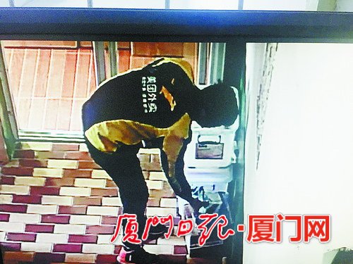 监控视频显示,一名身着“美团外卖”上衣的送餐员拿走一件包裹。