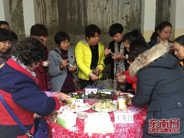 东南网3月11日厦门讯(通讯员 余雪燕 陈嘉新)黄姜饭、印尼粽、千层糕、沙嗒肉、咖啡酒、越南春卷、咖哆凉菜……同安竹坝被南洋美食包围了。为庆祝国际劳动妇女节,3月10日上午,同安竹坝开发区党工委携手区妇女联合会,举办和谐邻里文明家庭南洋美食展,吸引了数百名女士前往游玩。 上午10点记者来到竹坝,只见人潮涌动,数百名女士在越南美味、印尼美食、闽南风味、私房菜间来回穿梭,近20桌的美食们让她们流连忘返。其中,最受女士们喜爱的当属印尼平安宴,泰式猪颈肉、沙嗲、亚叁虾、巴东牛肉等十多道美食不一会儿就被吃得精光,还有不少游客在现场下单订购千层糕、咖啡酒等南洋美食。“泰式猪颈肉最好吃了!”市民陈小姐吃得不愿意“挪窝”,她说:“这是我第一次吃到品种这么齐全的南洋菜,感觉整个舌尖都在跳舞。”