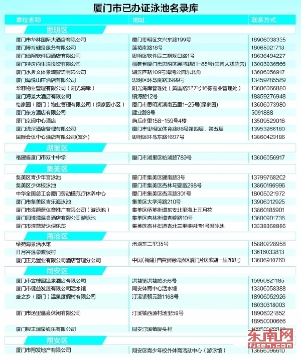 厦门市未办证泳池名录