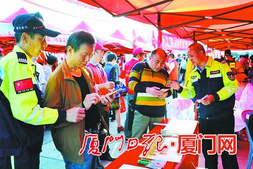 思明区志愿者向群众开展宣传,引领文明新风尚。 |