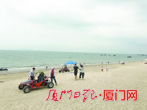玩月坡附近,沙滩摩托车经营者在招揽生意。 厦门日报讯 (文/图记者 陆晓凤 林路然 见习记者赵张昀)昨日,厦门日报报道《冲淋麻烦到了海边难下海》引起市民关注。 记者走访还发现,除了海滨浴场冲淋洗浴等基础设施状况不佳之外,海滩上的娱乐设施也存在不尽如人意之处。 |