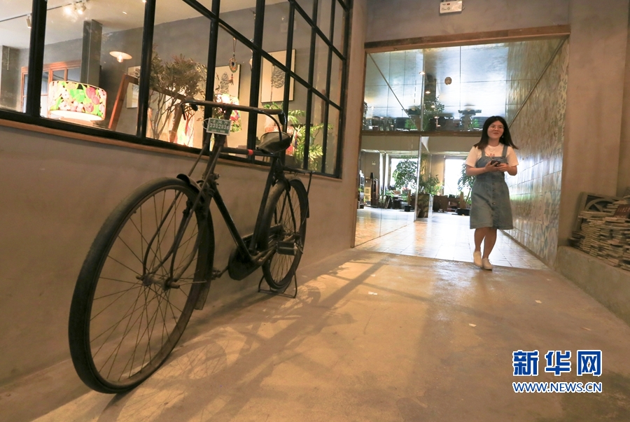 走过一个个春夏的脚踏车显得老旧不堪,如今也“走”进了“旧物仓”,在这里找到安身之地。图为一名女孩从旁边走过。新华网肖和勇摄