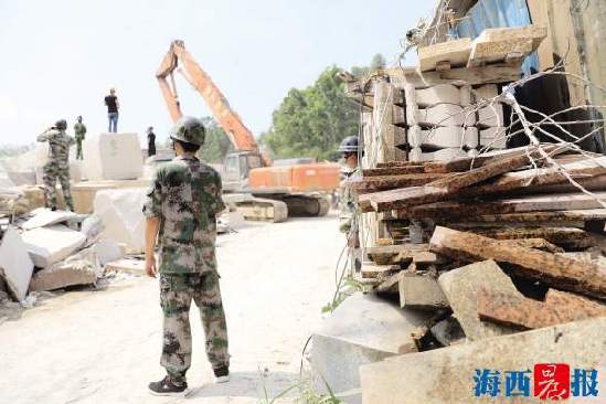翔安5家违法石材企业27日被强拆。通讯员 林木阳摄 海西晨报讯(记者 陈晓青 袁晓敏 通讯员 余庆东张宇)随着持续不断的“轰轰”声,简易搭盖的厂房被挖掘机的液压剪“揉”成纸团。设备被清除、厂房被拆除、堆场被清理,几分钟前还抱有侥幸心理的污染企业业主崩溃了,流下悔恨的泪水。 这是一场环境污染整治的围剿攻坚战。7月27日上午,由翔安新店镇政府、区环保、经信、国土、城管执法等300多人组成的联合执法队伍在现场分工协作,联合执法。据介绍,当天主要拆除的是新店镇辖区内被纳入拆除行动的马赛克厂、石材加工厂的违法建筑物、构筑物及生产设施,共拆除违法建筑物面积2285.16平方米,继而拉开了为期一周的马赛克厂、石材加工厂强制拆除行动。 5家违法石材企业被强拆 27日上午,记者看到,随着大型机械车缓缓开进场内,吊臂有力地下压,石材加工生产机械设备设施、厂房建筑等被一一拆除,水泥硬化地面被打成了碎片。 据悉,此次新店辖内的源诚信石材加工厂、翔安东顺建材有限公司等几家石材加工企业的违法建筑均被依法拆除,这也预示着,翔安区已正式开启石材企业污染整治清退专项联合执法行动,打响了针对列入清退范围的石材企业污染整治围剿战。 此次依法拆除行动为期一周,对象是被列入清退范围又拒不配合的马赛克厂、石材加工厂。据悉,当天除对未配合清退的8家石材企业依法实施断水断电之外,还对其中5家偷偷生产的违法石材企业进行依法强制拆除。 值得一提的是,针对马赛克厂、石材加工厂的污染整治,翔安早已在全区范围内,通过张贴《通告》、发放《一封信》、送达《清退告知书》和工作组上门反复进行政策法律法规宣传劝导,做到家喻户晓。据悉,翔安辖内338家马赛克厂和石材加工厂从7月1日起全部停产,截至7月26日,已清退313家,清退进度94.56%,完成验收267家。 现场有关负责人介绍说,几家被列入清退名单的污染企业须在7月31日前拆除搬迁全部生产设施设备,当天他们是针对被列入清退范围又拒不配合的石材企业依法实施强制措施,有的依法给予断水停电,其中5家被依法强制拆除。 |