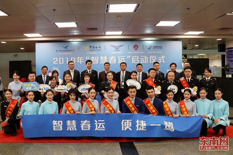 厦航在厦门机场举办“智慧春运”启动仪式。(贺晟 摄)