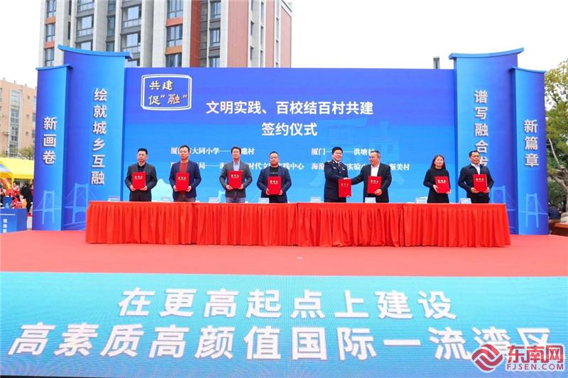 现场举行文明实践、百校结百村共建签约仪式(主办方供图) 东南网1月20日讯(记者 卢超颖)19日,厦门市海沧区城乡精神文明融合创建试点工作现场推进会在新阳街道新垵村举行。 活动由厦门市委文明办与海沧区新时代文明实践中心主办。当天,厦门市、区相关部门与海沧区各街道以及全区29个村居代表,还有来自新垵村及周边群众齐聚,共同见证海沧城乡精神文明融合创建试点工作现场推进会的召开,共同浇灌“文明之花”。 活动围绕“融”元素,以光影话“融”、百姓说“融”、街道述“融”、共建促“融”、社会助“融”等“五融”形式,呈现试点工作“一年示范引领”所取得的阶段性成果。活动现场播放了全区城乡精神文明融合创建试点工作汇报宣传片。 在百姓说“融”环节,现场视频采访了渐美村、石塘村、山边社区等试点村居的3名村(居)民代表,以百姓视角讲述村庄的变化和个人的参与感、获得感。“住在渐美村,我很幸福。”渐美村村民代表、退役军人蔡芳得表示,城乡精神文明建设融合发展,处处见行动,最终目的是带动大家一同支持村庄建设,进一步擦亮全国文明村的招牌。 统筹城乡融合发展,是一项复杂的系统工程,需要全社会的共同努力和积极参与。在福建省委文明办、厦门市委文明办的安排下,活动当天,全国文明单位、全国文明校园以及海沧全国文明培育校代表也来到现场,签约助力全区城乡精神文明建设融合发展。在共建促“融”环节,厦门海事局和海沧区新时代文明实践中心进行文明实践结对签约,厦门一中与东孚街道洪塘村、厦门市大同小学与海沧街道青礁村、海沧延奎实验小学与海沧街道渐美村分别进行“百校结百村”结对签约。 |