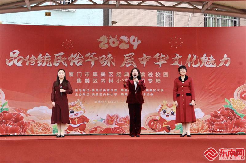 1月25日下午,厦门市集美区经典诵读进校园——“品传统民俗年味 展中华文化魅力”内林小学诵读专场举办。内林小学师生、家长及朗诵者们齐聚一堂辞旧迎新,在诵读中汲取精神力量,从民俗中吸收文化养分。