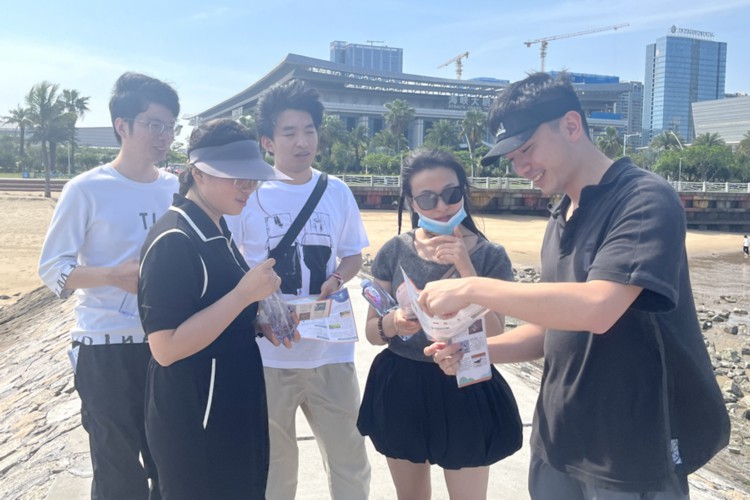 志愿者在候鸟观测点为游客讲解传授燕鸥的知识。林荷静摄