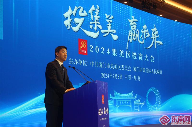 “投集美 赢未来”2024集美区投资大会(东南网记者 李霖 摄) 东南网9月8日讯(记者 李霖 通讯员 许钦涵)紧抓98金钥匙,开启集美新机遇。9月8日,第二十四届中国国际投资贸易洽谈会在厦门开幕,当天上午,“投集美 赢未来”2024集美区投资大会在杏林湾畔举办,为海内外客商推介营商环境、共享投资机遇,向全球发出“城市合伙人”的邀请。 “作为厦门工业的发源地、跨岛发展的标志区、动能转换的主战场,集美已成为厦门高素质高颜值现代化国际化城市的华彩缩影。”集美区区长倪杰在大会上致辞。他向与会嘉宾分享了集美区在科技创新升级、消费结构转换、出海拓展市场三大时代机遇方面的思考和布局。 倪杰诚邀海内外企业和人才以城市合伙人的身份来集美创业安家,他表示,集美将为城市合伙人提供充足的产业空间、不竭的创新要素支撑、全域开放的应用场景、广泛的融资渠道、温馨的安家环境,以优质贴心服务,让合伙人放心投资、安心经营、舒心发展。