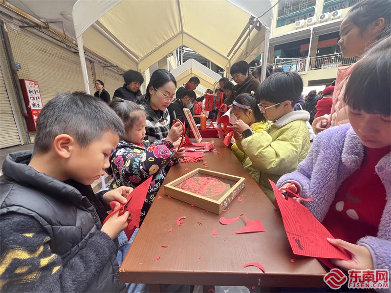 社区青少年献上文艺演出(东南网记者 李霖 摄) 东南网1月20日讯(本网记者 李霖)叫卖声与喝彩声交织,蔬果香与翰墨香交融,“天使白”添彩“春节红”……1月18日,在厦门市集美区乐海社区嘉农市场,一场新春市集火热“开市”,多彩迎春活动开进农贸市场,把浓浓年味儿送到居民“家门口”。 以“乐禧邻趣,海阅新程”为主题,活动现场集结了社区多方力量,为居民送上一份份各具特色的新春好礼——文艺团体、社区达人登台展才艺、送祝福;书法爱好者写春联、“福”字;医务人员开展义诊服务、骨龄检测;志愿者科普防灾减灾、食品安全、防诈反诈、垃圾分类知识。 值得一提的是,现场还提供了年糕、汤圆品尝,剪纸、拓印、猜灯谜等非遗项目体验;邀请居民“以书换蔬”,用旧图书换取新鲜蔬菜;举办趣味篮球赛,以球为媒促进邻里交流互动……一系列活动让居民有“知”有“味”迎新春。 首个“世界非遗版”春节的脚步临近,连日来,集美区新时代文明实践中心(所、站)围绕“我们的节日·欢乐中国年”主题举办系列文明实践活动,以文化味更浓、烟火气更足的活动形式,营造了喜庆祥和的节日氛围,丰富了群众的精神文化生活。 古诗云:“千门万户曈曈日,总把新桃换旧符。”春节贴春联的习俗寄托了人们对新年美好期盼。1月16日上午,曾营社区党委、曾营社区关工委、曾营社区新时代文明实践站、曾营小学联合开展了“笔墨浓情写春意 迎春接福进万家”新年活动。压纸、蘸墨、起笔、收笔……现场,社区老党员、学校师生齐上阵,挥毫泼墨、笔走游龙,书写着对新一年的美好祝愿,吸引了周边居民驻足欣赏、挑选,共同感受传统文化的独特魅力。 “从古老的民间习俗到现代的艺术表现形式,剪纸不仅承载着人们对美好生活的向往,更是中华民族智慧与创造力的结晶。”春节是展现剪纸这一非遗手工技艺的重要时刻。为了传承和弘扬中华优秀传统文化,锦鹤社区新时代文明实践站于17日开展“春意盎然·纸韵传情”活动,介绍了剪纸的历史渊源和技艺技巧,带领社区青少年体验剪纸乐趣,锻炼了动手能力,增强了文化素养。 趣玩民俗闯关、赏画品味年味……同日,岑西社区新时代文明实践站在嘉庚书房举办春节主题活动,将剪纸、彩球、红包等春节元素融入游戏互动;现场举办“新生活·新风尚·新年画”主题作品展,带领居民品味浓浓的年味。值得一提的是,活动还开设了双语主题课,邀请老师用中英双语讲解春节由来、习俗,让春节更有“国际范”。 春节是阖家团圆的日子,也是传承优良家风家训的重要节点。18日,双乐社区新时代文明实践站开展“传中华家训家教家风 树新时代文明新风”理论宣讲。活动以多位知名学者和文化名人为切入,通过生动的历史故事、典型的家训案例,展示了家风在塑造人格、培育品德、传承文化方面的重要作用,引导社区居民大力弘扬中华民族传统美德,传承优良家风家训。