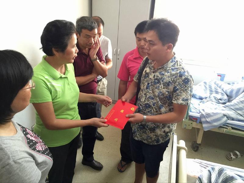 厦门市妇联新闻网讯“莫兰蒂“台风过后,厦门公路养护人员日夜加班奋战。作为公路养护工,古名庭和妻子华玉梅每天起早摸黑,投入到抢险一线中。从疏港路到成功大道,夫妻俩和工友们并肩作战。9月18日凌晨,古名庭、华玉梅夫妻俩正在现场维持秩序,现场一辆微型小货车肇事,丈夫古名庭经抢救无效不幸遇难,妻子受伤送医。 这起事故引起了社会各界的广泛关注,也牵动着市妇联领导的心。9月22日上午,市妇联主席吴亚汝、副主席朱秀敏、纪检组长洪允治赴中医院看望华玉梅,并送上了5000元的慰问金。“好好加油,照顾好妈妈。”吴亚汝主席对古名庭的儿子古才军说。 |