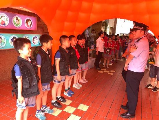 此次活动还特别巧妙地运用警察角色扮演的游戏,让学生们进行安全巡逻、跟踪嫌疑人、抓捕罪犯等实景演练,以体验式的宣传方式,让孩子们能更直观和深刻地理解毒品的危害,筑牢思想防线,增强自我保护能力。