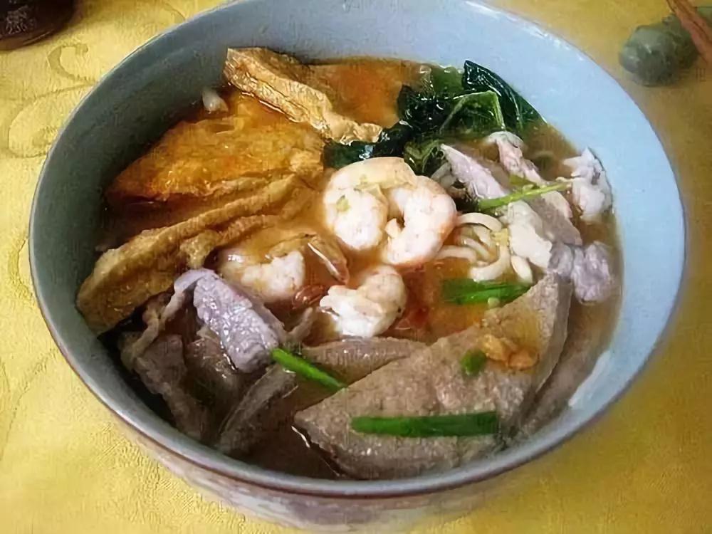 沙茶面→ 沙茶面是厦门的经典面食。金黄带着红亮的油花,迷醉人的其实是花生、虾米、辣椒、沙姜等煸炒熬制出的汤头,又甜又辣,令人垂涎。
