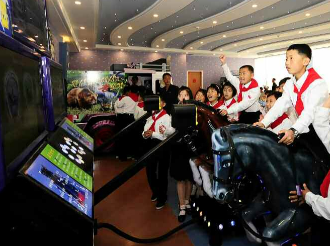 朝鲜红领巾玩攀岩打电玩欢庆少先队节