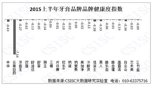 2015年上半年牙膏品牌网络口碑报告发布 牙膏也属化妆品如何选择看口碑 中国质量新闻网消息 《化妆品监督管理条例(修订草案送审稿)》于7月20日在中国政府法制信息网公布。条例显示“牙膏等口腔护理用品的主要使用目的是清洁和美化,符合化妆品的定义”,将口腔护理用品纳入化妆品范畴。这将对牙膏企业有一定的震慑作用,对于夸大或虚假宣传牙膏功效的品牌将受到严厉的管制。这一条例的修订表明了牙膏市场也是鱼龙混杂,消费者对于牙膏品牌的选择和牙膏功效的验证都是有难度的,如何选择一款适合、质量上乘的牙膏尤为重要。 中国统计信息服务中心(CSISC)大数据研究实验室联合中国质量新闻网、千龙网今日发布2015年上半年《2015年上半年牙膏品牌网络口碑报告》(以下简称报告)。报告以市场表现比较活跃的品牌作为监测研究对象,筛选2015年上半年表现活跃的22个牙膏品牌,包括佳洁士、云南白药、中华、黑人、高露洁、狮王、皓乐齿、舒适达、LG竹盐、三精、美加净、牙医生、白云山、片仔癀、欧乐B、舒客、纳爱斯、艾禾美、冷酸灵、双莲、纳诺、皓齿健(排名不分先后)。 口碑指数评价体系是指运用多个指标,多方面地对一个组织或品牌进行评价的方法,主要通过品牌知名度、消费者互动度、质量认可度、企业美誉度、产品好评度、品牌健康度等六个维度组成。2015年上半年牙膏网络口碑总指数中佳洁士、云南白药口碑领先,中华、黑人紧追不舍,双莲、纳诺口碑总指数较低。