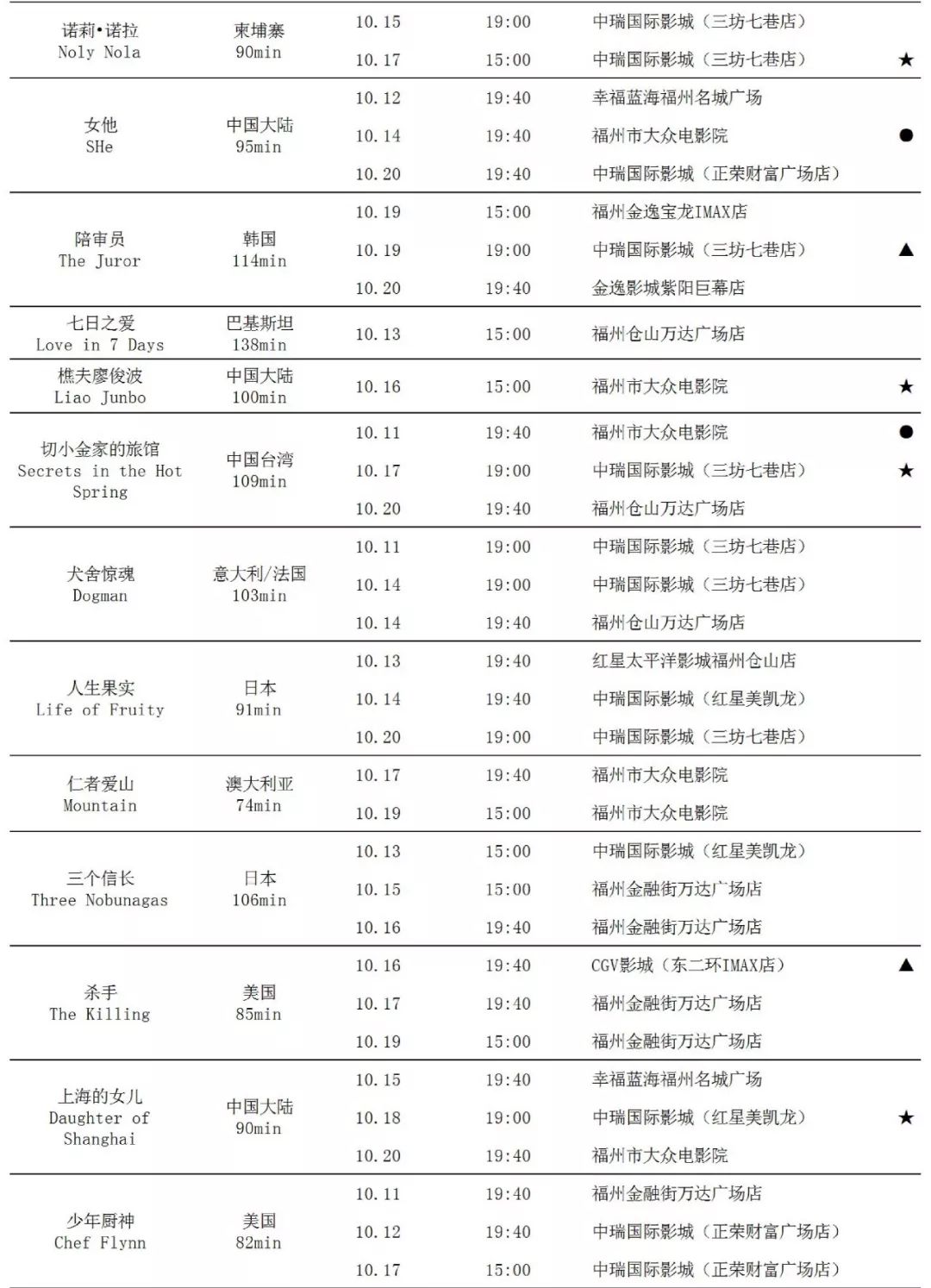 展映片单