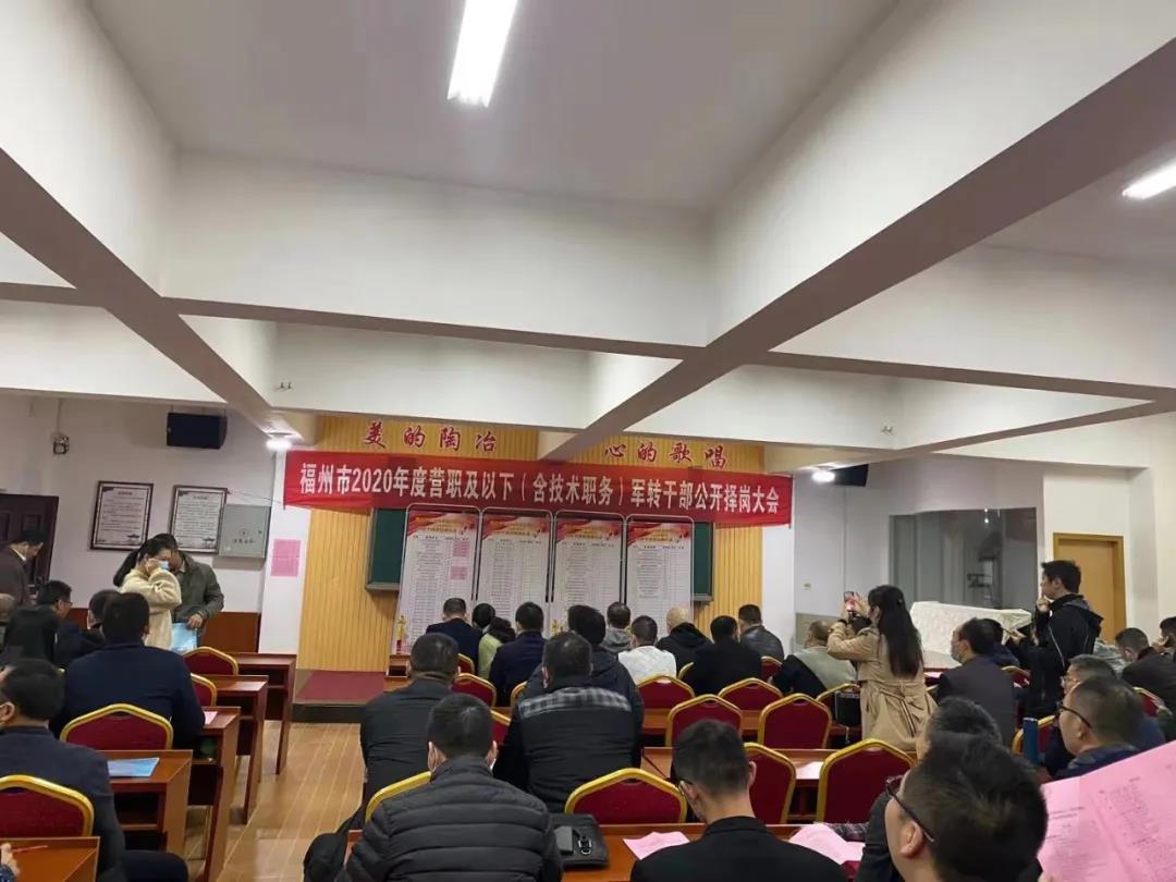 日前,福州市完成2020年度营职及以下(含技术职务)军转干部公开择岗工作,顺利实现符合安置条件的军转干部100%安置到行政和参公岗位的目标。