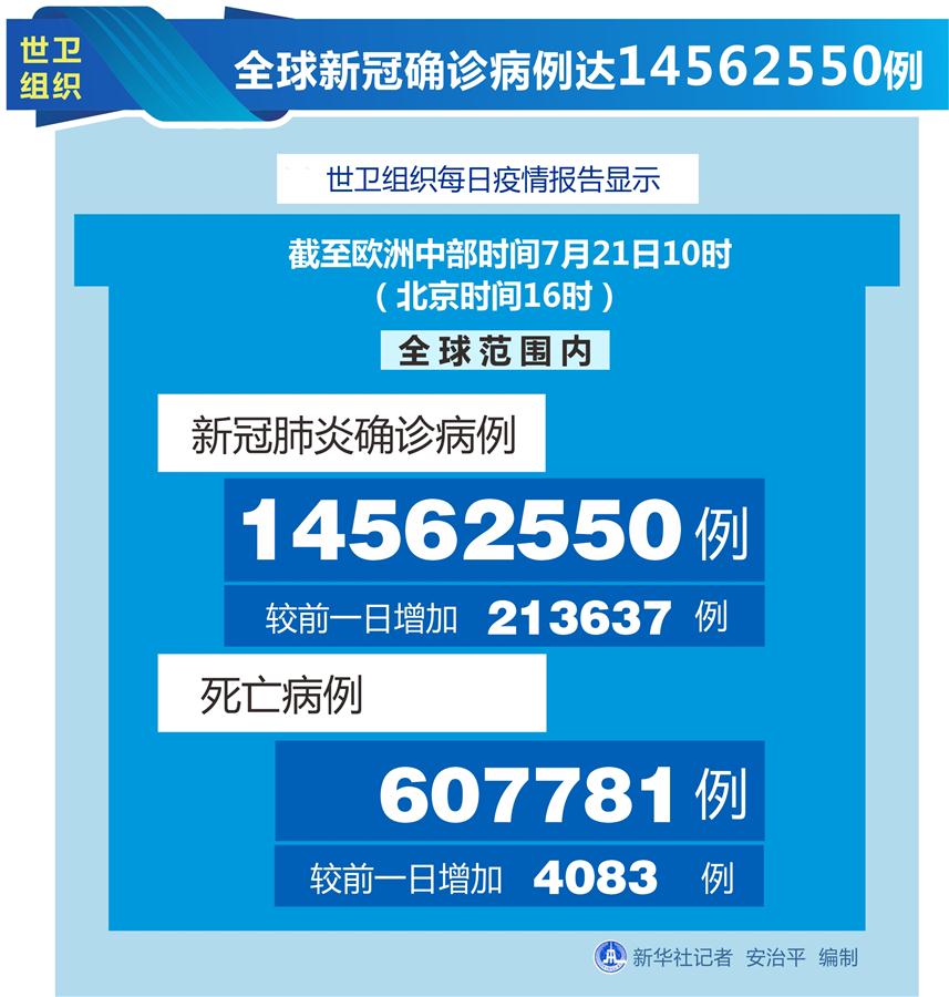 世卫组织:全球新冠确诊病例达14562550例