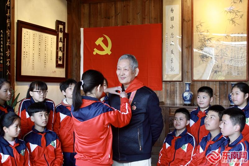 少先队员为志愿军老兵系上鲜艳的红领巾 林雯婷 供图 随后,孩子们搀扶着林爷爷一起参观了陈氏五楼和吴石故居,林爷爷亲切地对孩子们叮嘱道:“一定要好好珍惜现在来之不易的幸福生活,好好学习,报效祖国!”