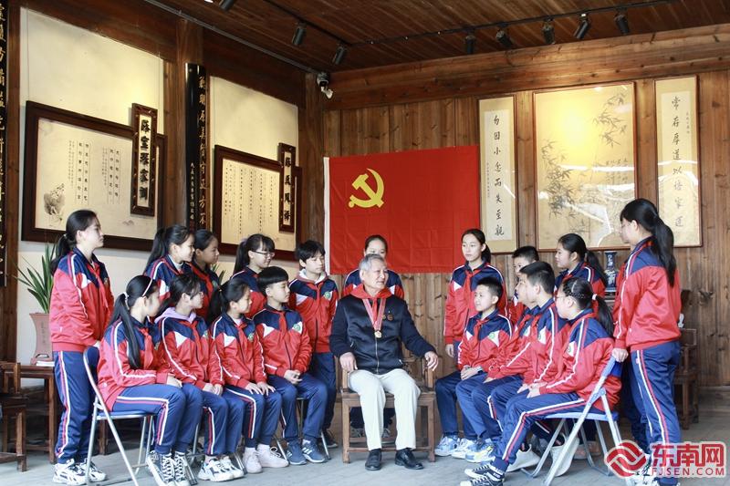学生们围着在志愿军老兵身边 专心的听着他讲述亲历“抗美援朝”的故事 林雯婷 供图 东南网讯(本网记者 林张清 通讯员 林雯婷)3月25日上午,福州市仓山区螺洲镇在陈氏五楼举办以“宣讲红色故事,传承红色基因”为主题的党史教育宣讲活动,邀请参加过抗美援朝的87岁老兵林君才为螺洲中心小学的学生和螺洲镇干部职工们讲述志愿军作战的故事。 在陈氏家风家训馆的厅堂中,孩子们围着林爷爷坐在一起,林爷爷以“参加抗美援朝的回忆”为主题,为大家讲了一堂生动的党课,解放军战士不畏困难、不怕牺牲、勇敢作战的英勇事迹。七十多年前战场情景历历在目,无数战友倒在了血泊中换来了战斗的胜利”。林爷爷强忍内心的激动感慨道,今天的幸福生活来之不易,在中国共产党的坚强领导下,国家日益强盛,流血牺牲的战友用生命换来的胜利是值得的。如果再回到过去,他还是会做出同样的选择,从军入伍上战场!