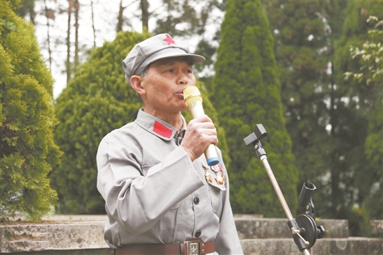 着戎装讲解 与时俱进讲述革命史 郭建生是一名老兵,对爱国主义和国防教育深有感触,常以自己的亲身经历引导年轻一代接续奋斗,爱国爱家。 当日,一身红军装的他精神抖擞地讲着先烈们的革命事迹,非常有代入感。在他的胸前,3枚军功章熠熠生辉,分别是解放军总政治部颁发的纪念章和三等功军功章,以及广州军区颁发的三等功军功章。这3枚军功章是郭建生革命爱国精神的写照,而他也将革命爱国精神传递给年轻一代。 20多年前,郭建生便常受村党支部、村委的邀请,义务为前来祭奠烈士的人们讲解山城的革命斗争史。2013年之后,随着这里的革命斗争史被广泛传播,基地又升格为泉州市国防教育基地、爱国主义教育基地。熟悉革命斗争史又讲得好的郭建生渐渐成为专职讲解员,一有人前来瞻仰、祭扫,他便受邀前来讲解,每年讲解的次数也不断增多,从10来次增加到了20多次。 为了做好讲解,郭建生经常翻看山城革命斗争书籍资料,相关内容他都烂熟于胸,无需讲稿,出口成章。为了防止同样的解说翻来覆去讲解,他还注意与时俱进,结合新时代、吸收新思想,将自己的感想加进去,将继承革命先烈的遗志、弘扬革命光荣传统与实现“两个一百年”奋斗目标、实现中华民族伟大复兴的中国梦结合起来,激励年轻一代接续奋斗。 |