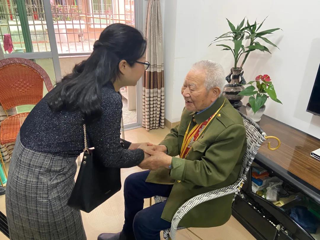 4月7日下午,漳州市华安县退役军人局联合县老干局、融媒体中心一行人来到百岁抗战老兵、离休干部杨建明家中走访看望,聆听红色声音,接受红色洗礼。