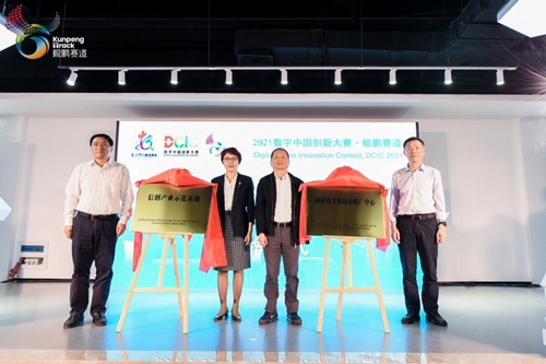 数据先锋战队比赛答辩 总决赛开幕式上,中国科学院院士林惠民对国产化数字生态发展和鲲鹏计算赛道建设表达了热切的关注和期盼,他表示“软件只有第一,没有第二。中国软件产业能不能做大做强,将取决于我们原始创新的能力。” 福州市政协副主席郑云春、福州市鼓楼区委书记朱训志、福州市鼓楼区长黄建新、福建省工业和信息化厅软件服务业处处长刘少洪共同出席总决赛活动,并为“中国数谷·信创产业示范基地及协同攻关和体验推广中心”揭牌。