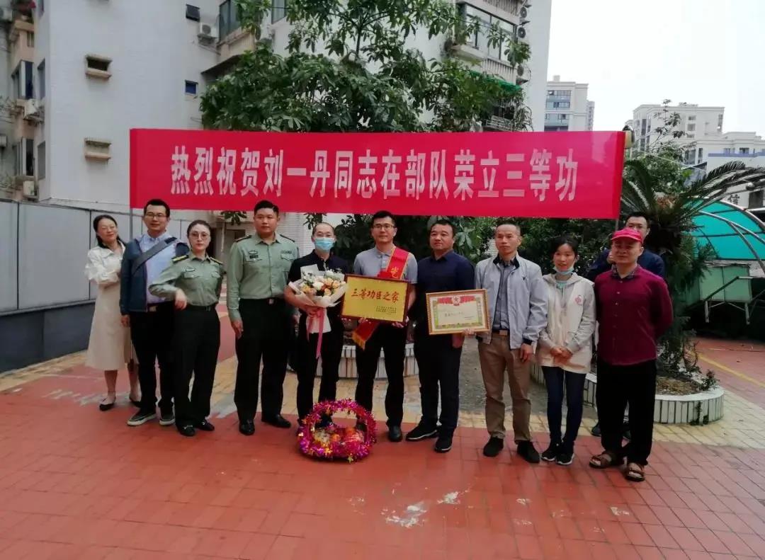 喜报送到后,陈炜与帅振东家属亲切交谈,详细询问他们的工作、生活情况,对家属为军队培养了优秀人才表示衷心的感谢。家属对于孩子在部队表现突出荣立二等功感到很欣慰,并感谢国家和部队对孩子的培养。 10月21日,鼓楼区退役军人局慰问组为荣立三等功刘一丹家属送去喜报和慰问金。 慰问组一行赞扬刘一丹家人为部队、为国家培育出了优秀人才。