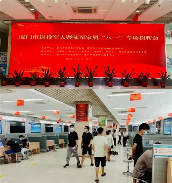 △开展厦门市退役军人暨随军家属“八一”专场招聘会 同时,厦门多措并举推动随军家属就业安置:率先建立未就业随军家属基本生活保障金制度,有效缓解了随军家属待安置期间的家庭生活压力;落实随军家属自主创业扶持奖励、报考教师和社区工作者加分照顾;采取每年集中安置做法,按照“身份对等、单位性质和专业岗位相近”原则安置随军家属、烈属工作…… 在教育拥军方面,厦门立足服务与保障,结出累累硕果:关爱官兵“后代”,落实军人子女教育优待政策,按照“就近便利、同等优先、特殊人员加分、双军人照顾”原则,保障调防移防和新组建部队军人子女入托入学。近年来,落实保障驻厦部队军人子女教育优待1700余人次。 军地联动:军民同心共促城市发展 在狂风暴雨中,道路积水、大树倒伏、电线垂落……一个个冲锋在前、着手抢险和城市恢复工作的坚毅身影,深深印刻在人们心中。驻厦部队在大力支持地方经济建设、维护社会稳定和应急抢险救灾中,发挥“生力军”“突击队”作用,受到全市人民的拥护和爱戴,被誉为经济特区的威武之师、文明之师。 长期以来,驻厦部队积极参与厦门创建全国双拥模范城、全国文明城市等活动;组织开展军民共建,实施“脱贫攻坚工程”“暖心工程”“希望工程”等十项工程;支持参与社会治安综合治理,组织开展军警民联防共建,在创建“平安厦门”“平安海域”上彰显大作为。 面对突如其来的新冠肺炎疫情,在严防境外疫情从厦门市沿海输入的第一线,军警民合力强边固防。厦门警备区、厦门海警局、31614部队与厦门公安建立联防联控和联勤协作机制,先后妥善处置了多起重点关注船舶来靠厦门的敏感事件及海上突发事件,实现海上非法入境人员“零上岸”、境外疫情海上非法渠道“零输入”。 驻厦部队用真情和汗水回报第二故乡、支持地方发展,厦门也不遗余力为子弟兵提供后勤保障、服务强军建设。近年来,全市600余对军民共建单位85%以上被评为省、市级先进单位。 “改革不忘拥军,发展更重拥军”,这是厦门人民的共识。一直以来,厦门注重在政治上、生活上和政策上关心驻厦部队,让经济特区改革发展成果惠及全体官兵。一组数据亮出成绩单:近几年安排8亿余元支持原武警厦门消防支队、“鼓浪屿好八连”等部队营区建设和装备更新;安排2000多万元支持“英雄三岛”等一线部队训练设施建设;协调解决驻地部队6个工作站定点部署设施建设…