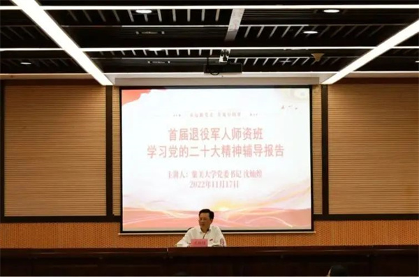 11月17日下午,在厦门退役军人学院师资班课堂上,集美大学校党委书记沈灿煌以《首届退役军人师资班学习党的二十大精神辅导报告》为题,为首届退役军人师资班作学习党的二十大精神专题辅导报告。