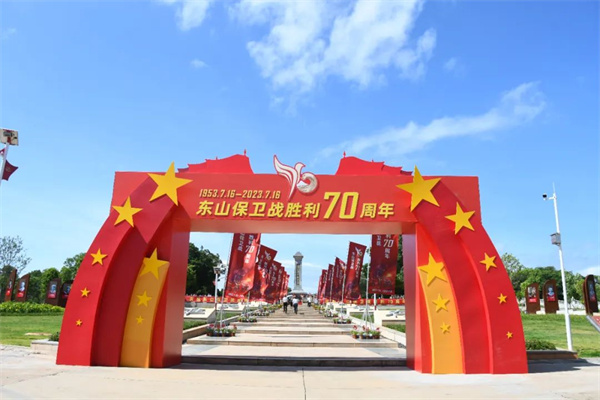 12名礼兵整齐列队,托起6个花篮,迈着铿锵步伐,缓缓走向东山战斗纪念碑,将花篮摆放纪念碑前。军地有关领导神情庄重,缓步向前,仔细整理花篮缎带。接着,全体人员行三鞠躬礼,缓步绕行,瞻仰纪念碑,深切缅怀革命先烈。部分官兵及老战士还到东山战斗纪念馆参观,现场聆听介绍、了解战斗经过,传承红色基因。