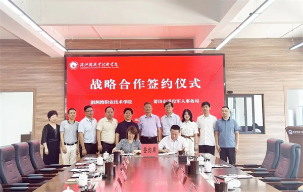 7月14日,湄洲湾职业技术学院与莆田市退役军人事务局举行战略合作签约暨莆田市退役军人教育学院揭牌仪式。湄洲湾职业技术学院党委书记林建华、院长许冬红,市退役军人事务局党组书记、局长黄松林等出席,共同见证了湄洲湾职业技术学院与莆田市退役军人事务局举行战略合作签约。活动期间,在林建华、许冬红等人见证下,黄松林为首任莆田市退役军人教育学院院长陈凯颁发聘书。