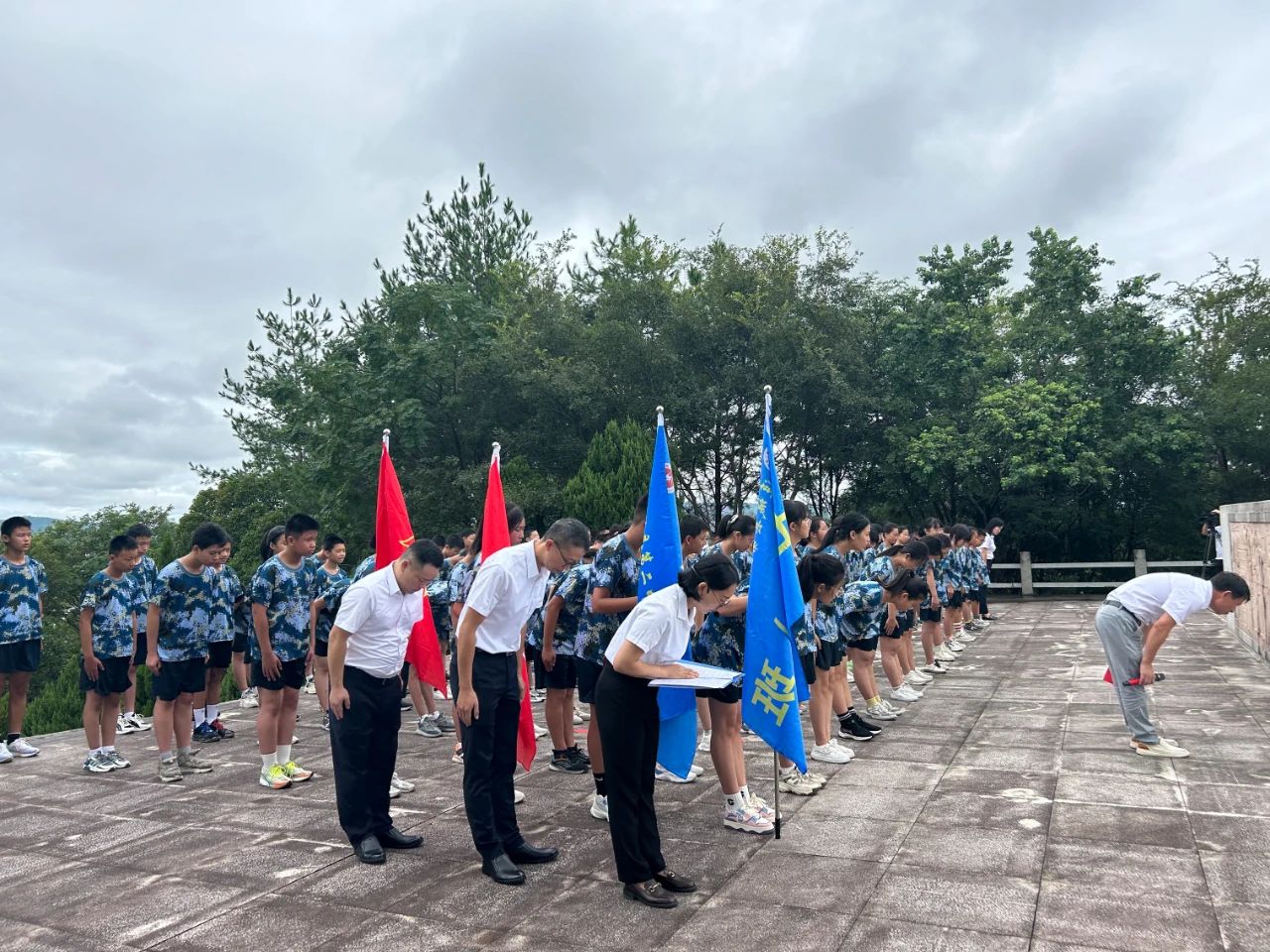 岁月车轮滚滚向前,英雄事迹铭记于心。8月29日,龙岩市连城县退役军人事务局组织连城二中部分七年级新生和教师前往怀英园,在革命烈士纪念碑前,开展以“弘扬英烈精神,传承红色基因”为主题的“开学第一课”。连城县委常委、副县长林威出席活动。