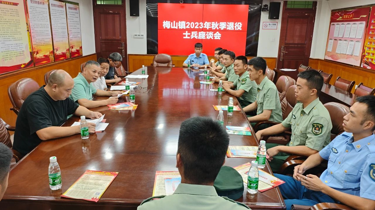9月10日上午,梅山镇组织的“我与老兵面对面”活动在镇政府会议室举行。梅山镇党委四级调研员郭天晓,镇党委委员、武装部长罗贤华,镇武装部及退役军人服务站全体工作人员,2023年秋季退役的退役士兵参加了此次活动。