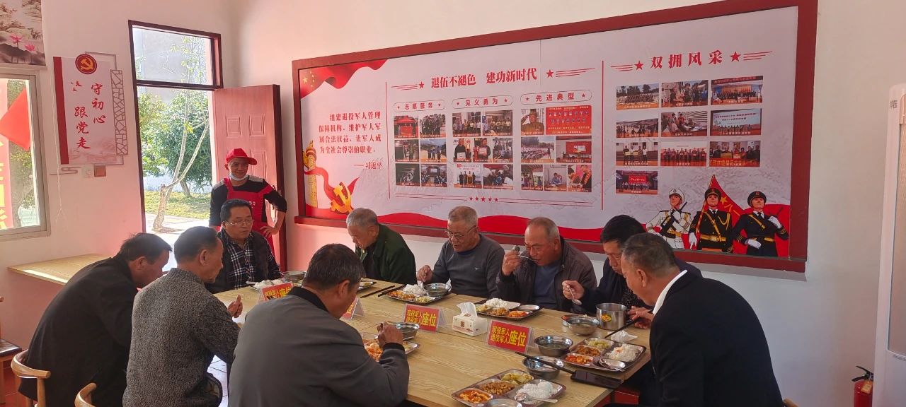 林华彪是该食堂理事会成员,他表示,港西村历来有尊老爱幼传统,食堂所在地利用原村小学教学楼,经过质量安全等级测定,改造装修而成的“孝善园”一层,空间开阔明朗。同时,港西村是70年前东山保卫战主阵地之一,老兵和支前模范多,目前有退役军人46名。 经过调查,他发现老兵中有11名是65周岁以上长者。林华彪认为,老兵为祖国奉献了青春,不能让他们等太久,应适当扩大优惠范围,让更多老兵惠及全国双拥模范县的“福利”。 经过该长者食堂理事会内部协商,决定将65岁以上老兵、低保对象军属和丧失劳动能力的残疾军人,纳入免费就餐对象范围。同时还规定,现役军人需要的,可在该食堂免费用餐,并设置了现役、退役军人专用桌。 12月29日,该长者食堂举行了加挂“双拥食堂”仪式。墙上新布置的“退伍不褪色、建功新时代”宣传栏,让林再生感到一股温馨喜悦的情愫跃上眉角,内心也盛满了满满的军人荣誉感和幸福感。当天中午,他在食堂盛了番茄炒蛋、炒时蔬、黄豆炒肉和小白菜猪血汤。 “目前只有11名符合优惠就餐条件,人虽不多,但体现了我们对军属及退役军人的尊重。”林华彪介绍,需要用餐的对象只须提前交2元钱登记,便可享用三菜一汤的福利,目的是防止食物浪费。 说起加挂“双拥食堂”牌的想法,东山县双拥办相关负责人介绍,他们在近期主题教育中对新时代拥军新举措进行了思考与探索。一个月前,在东山县里另一个村也考虑过放宽年龄限制,将老年退役军人纳入免费就餐范围,由于担心增加运营负担,一度放弃想法。但就在几天前,获悉港西村长者食堂开业,经过东山县双拥办协调,食堂理事会很快同意。