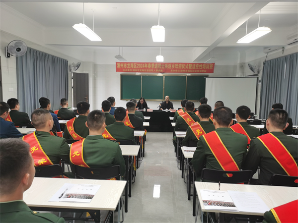 优秀企业家郑惠元与学员讲述创业经历 为帮助自主就业退役士兵尽快实现角色转换,适应社会发展的新环境,根据“即退即训、全员参加”的要求,3月18日,龙海区2024年度春季退役士兵返乡欢迎仪式暨适应性培训班开班仪式在漳州金枫农耕文化园顺利举行,39名退役士兵参加。