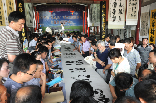 为深入贯彻党的十八大和十八届三中全会精神,落实省委关于“百姓富、生态美”的战略部署,发动社会各界共同参与环保宣教工作,推动农村生态文明建设,6月15日,省环境保护宣传教育中心联合团省委农工部、福州市环保局、省书法家协会、东南网、长城将军书画院福州分院、福州市美术家协会、福州东方书画社、罗源县飞竹镇政府、罗源县环保局、罗源县飞竹镇守善村等单位在福州市首批十佳最美文化村--罗源县飞竹镇守善村举办“百姓富、生态美”环保宣教进乡村主题书画展活动。